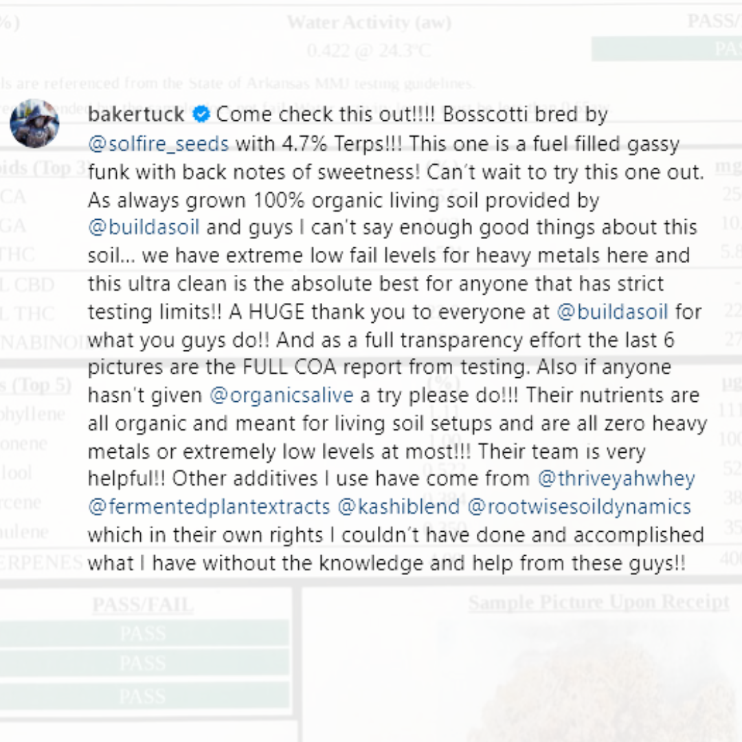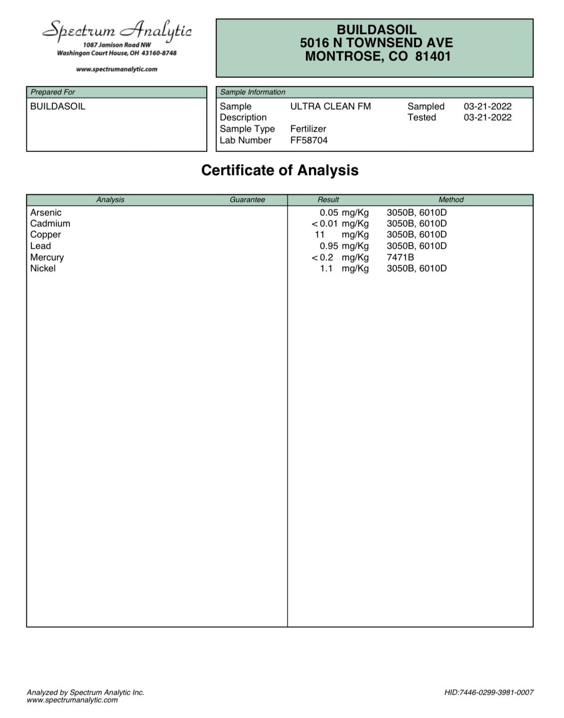 Home Growers don’t worry about this! Heavy metals in all BuildASoil recipes are lower than other potting soils and native soil. Even still, commercial medical growers need to start with the lowest possible amounts to pass the ridiculous testing that they are forced to go through. Commercial and Medical Growers are up against some of the most strict standards for Heavy Metals in the world.