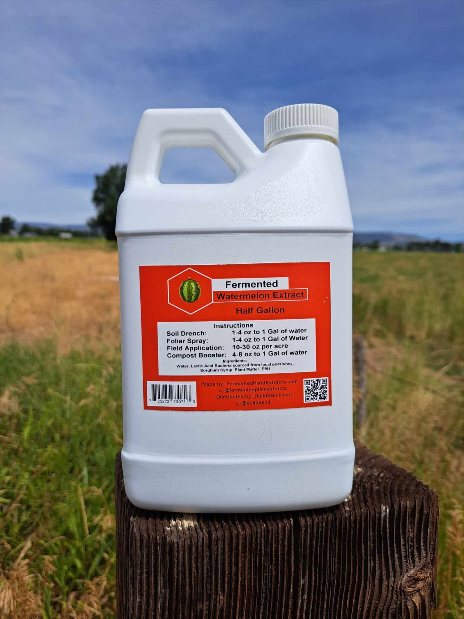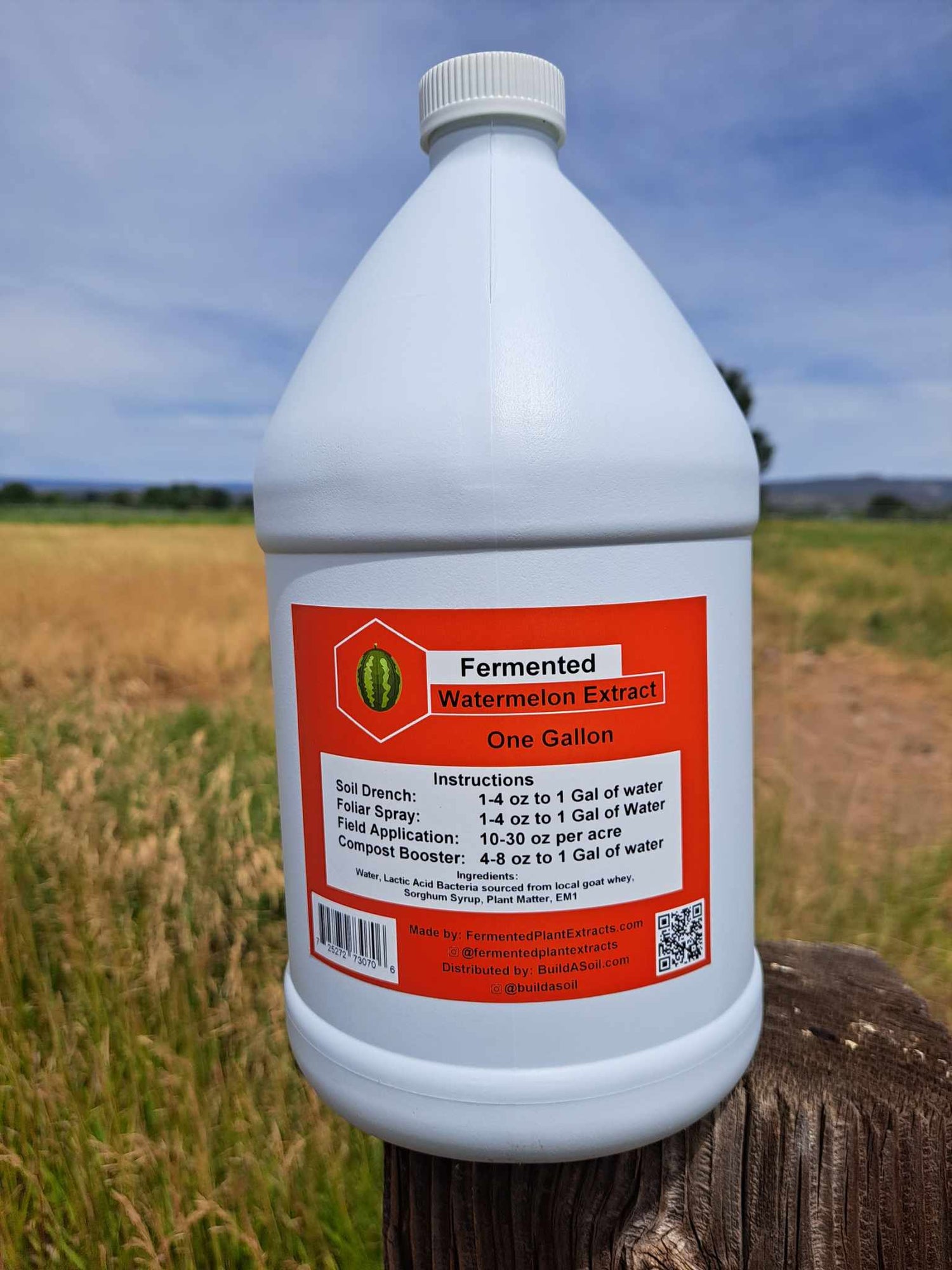 Derived From: Clean Mountain Water, Watermelon, molasses, sorghum syrup, Lactic Acid Bacteria sourced from local goat whey, and EM-1. This is then fermented until the plant matter is digested and extracted into the liquid and the sugars are consumed by the microbes to lock in the PH for stability and ease of use in the garden.