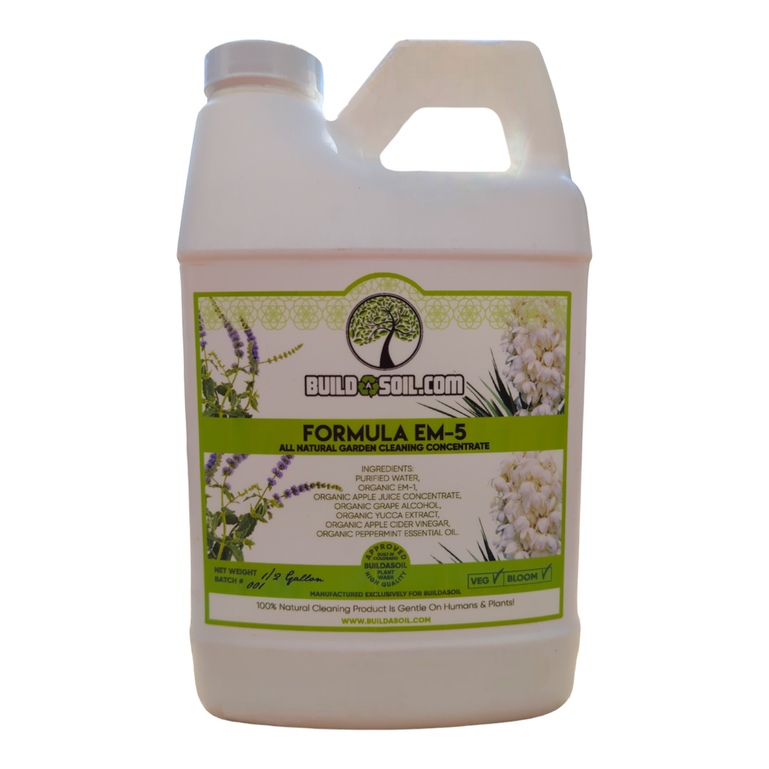 Spray EM5 alternately with EM1 or Fermented Plant Extract through a hose-end sprayer.