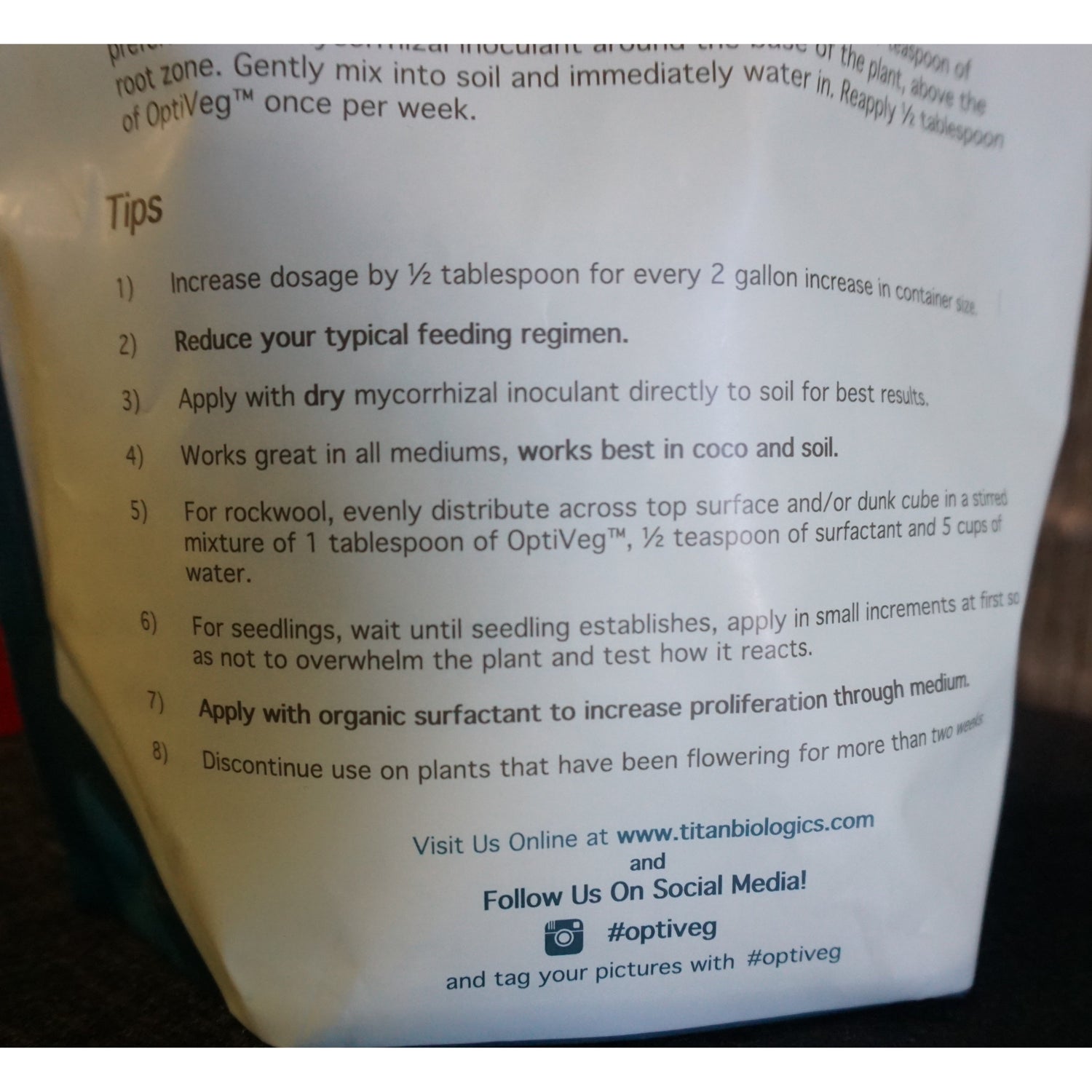 Titan Biologics worked tirelessly to develop a testing protocol which ensures a stable and consistent chitin content. OptiVeg™ is not salt based and contains no synthetic components therein reducing the risk of feeding too much. At 8.2% chitin,OptiVeg™ is a must use product for any growers who wish to speed up the vegetative process while yielding healthier, more robust plants with improved resistance and potential for higher yields.