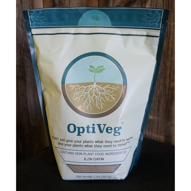 OptiVeg™, formerly InvigaRoot, is the markets first truly tested chitin product. As an all natural and organic soil amendment, chitin has an array of benefits such as reducing the effects of light and transplant shock, preventing the growth of detrimental soil bacteria, improving plant vigor and resistance, increasing root growth and fungal inoculation all the while increasing yields down the line. Since chitin is present in the cuticle of all fungi, incorporating a chitin based product in conjunction with your favorite fungal inoculant speeds up the inoculation process allowing you to use less product and reduce costs. Unlike all other chitin based products, OptiVeg™ is not derived from marine sources and thus does not include detrimental minerals that affect nutrient uptake, soil pH and overall plant health. In addition to chitin,OptiVeg™ is chock full of amino acids which make up roughly 60% of the overall composition.